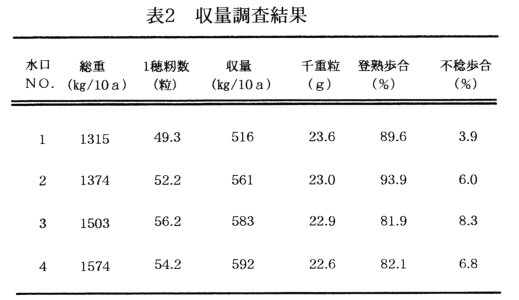 湛水後の水補給を、4ヶ所の水口の内2ヶ所だけ(NO.1,NO.3〜図3で行っても、その付近だけ冷水害を受けることはない(表2)。