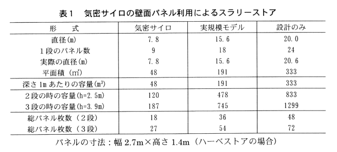 土木工事用コンクリートパネルや、解体された大型気密サイロの壁面パネルを用いて、簡易糞尿貯留槽を設計できる。また、簡易被覆ラグ−ンの推定蒸発水量は降雨量の約20%である。