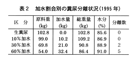 実験装置での加水撹拌後の糞尿の分離の発生は、実際の場面でのスカムの発生と考えられる。