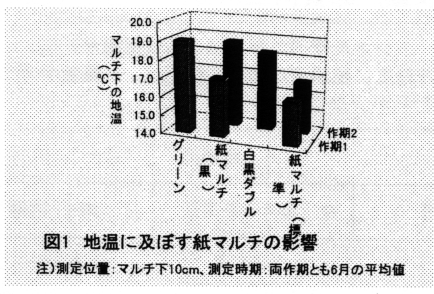 レタスでは、黒紙マルチは5月中旬から8月上旬まで、標準紙マルチは6月上旬から8月上旬まで利用できる。はくさいでは、標準紙マルチおよび黒紙マルチが6月上旬から8月上旬まで利用できる。だいこんでは、黒紙マルチのみ7月から8月上旬播種の作期で利用できる。
