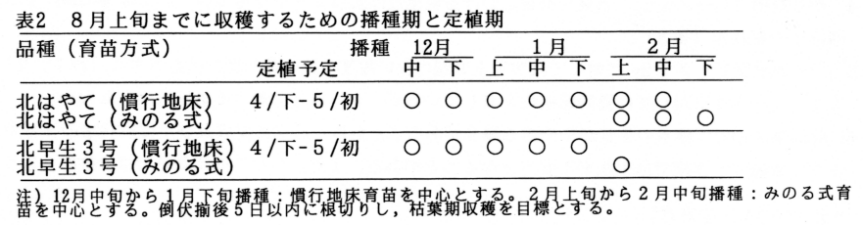 北海道立北見農業試験場・研究部・園芸科 [連絡先]0157-47-2146 [部会名]作物 [専門]栽培 [対象]葉茎菜類 [分類]普及