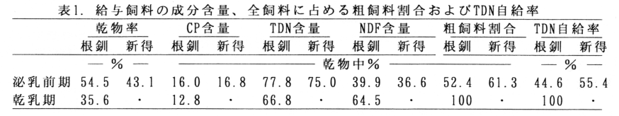 牧草サイレージ主体で飼養された根釧では、全飼料中NDF含量が39.9%と高く、新得よりDMIで2.1kg、DMI/体重で0.39ポイント低く、NDF含量がDMIに影響したと考えられる。