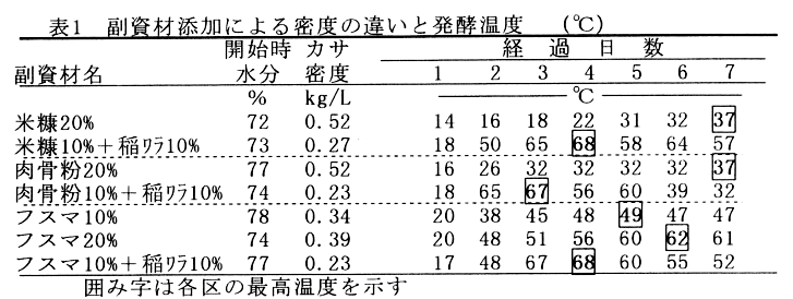 易分解性有機物が多くても物理性に改善がないと発酵促進効果は小さい。(表1)