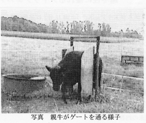 肉牛母子牛の、親のみが通れて子牛が通れない母子分離用ゲートを開発した。また、親牛がこのゲートを通れるように馴致する簡単な方法を示した。このゲートを用いて放牧地で制限哺乳を行ったところ、3か月齢までの子牛の発育は良好であった。