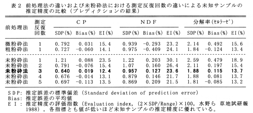 研究課題名:オーチャードグラスの高品質・多収・環境耐性品種の育成 予算区分 :経常 研究期間 :平成10年度(平成6年〜20年) 発表論文等:近赤外線反射測定法(NIRS)によるオーチャードグラス未粉砕試料の化学成分および分解率の簡易測定法,日本草地学会誌,44巻別号,266-267,1998