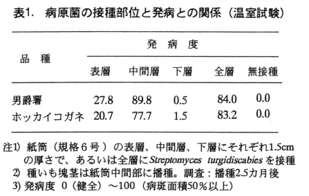 北海道農業試験場・生産環境部・病害研究室 [連絡先]011-857-9277 [部会名]生産環境 [専門]作物病害 [対象]いも類 [分類]研究