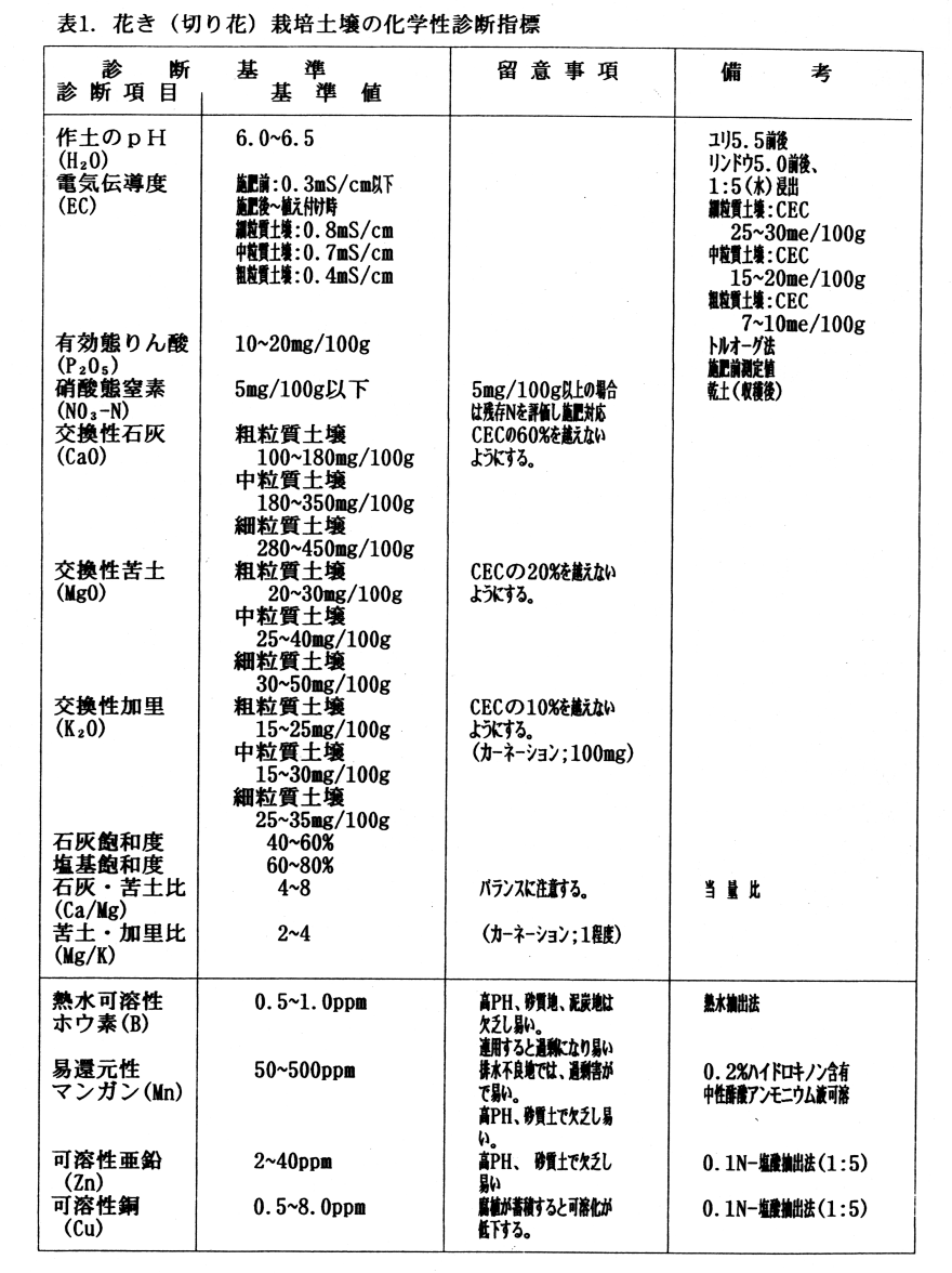 作土層を対象とし、pHはH2Oで6.0〜6.5とし、ユリ、リンドウについては、別扱いとした。