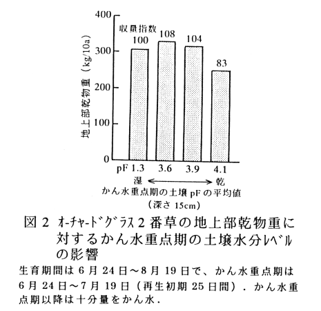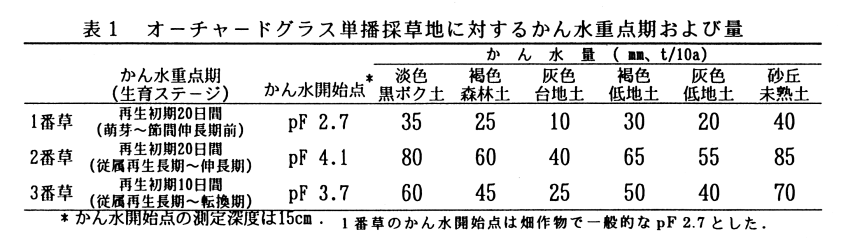 研究課題名:牧草に対する好適土壌水分環境の解明 予算区分 :受託 研究期間 :平成10年度(平成6〜10年) 発表論文等:オーチャードグラス2番草に対する水分供給重点期,土肥要旨集,43,304,1997.
