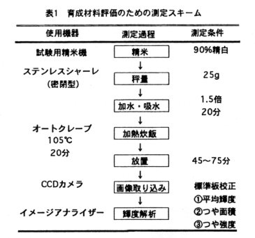 白さやつやで表現される米飯の外観特性は、粘りや硬さといった食感とともに食味評価上の重要なファクターであるが、これらの測定機器は開発されていない。そこで画像解析による米飯外観評価法を開発し、極良食味品種選抜への応用をこころみた。