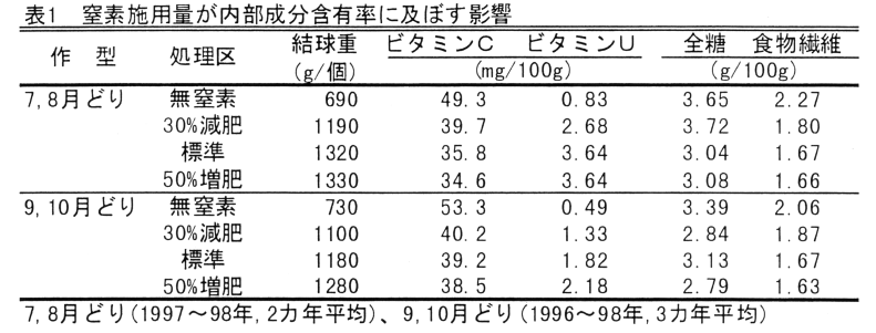 研究課題名:クリーン農産物の栄養性と機能性成分の評価 予算区分 :道費 研究期間 :平成10年度(平成8〜10年度) 発表論文等:小宮山誠一,古館明洋,小野寺政行,目黒孝司,キャベツの栄養性成分に及ぼす窒素供給形態の影響,土肥誌要旨集,第45集,1999
