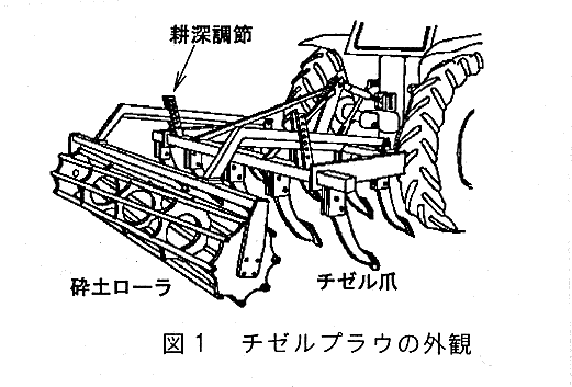 - チゼルプラウの耕深が大きいと耕盤を破砕し、乾田直播では漏水が多くなり、移植栽培では耕盤の凹凸により田植機の走行性が低下するため、耕深を10〜15pに留める。