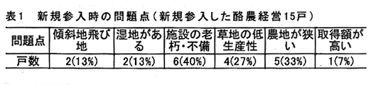 - このことから、受け入れを進める地域主体が新規参入経営の経済的成功を誘導するためには、参入希望者の誰でも受け入れるような安易な参入を抑制し、事前評価として営農方針の確認、技術能力の評価、携行資金額の確認を行うことが必要である。農場選定では、営農方針に対する規模や施設の状態、草地の生産性など営農方針への適合性、必要な追加投資額の事前検討が必要である。