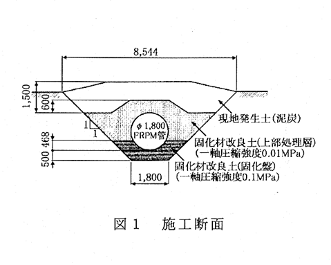 固化剤を用いた泥炭性軟弱地盤上での管路施工