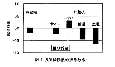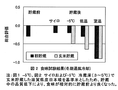 - 北海道におけるカントリーエレベータのサイロ内籾貯蔵における籾の品質は自然放冷で低温貯蔵と同等、冬期通風冷却ではこれ以上に保持される。さらに籾の品質保持には貯蔵前の籾精選別が重要となる。