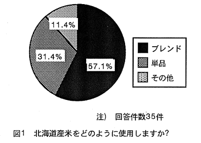 - 北海道産米はブレンドで57.1%使用されており、単品での使用は31.4%であった。ブレンドの対象銘柄品種はコシヒカリ、ひとめぼれ、あきたこまちの順であった。