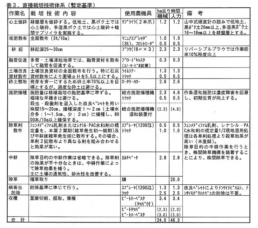 - 課題名:てんさい直播栽培技術体系(暫定基準) (指導参考)