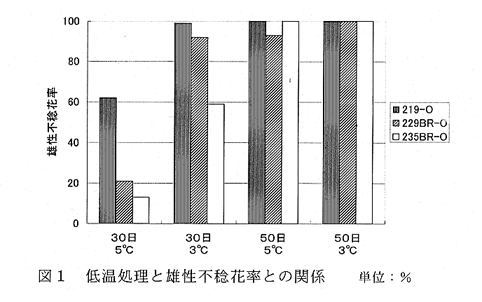 - 雄性不稔化に必要な低温処理期間には系統間差がある。