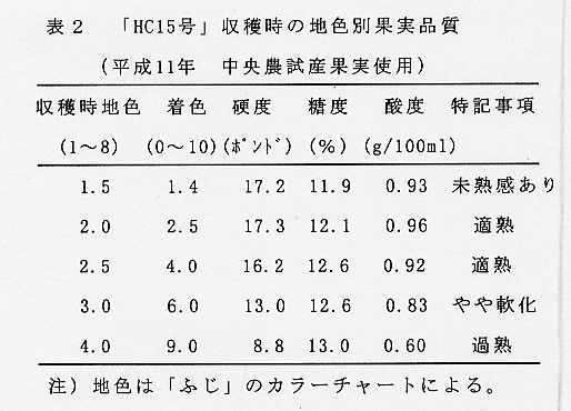 - りんご新品種候補「HC15号」は極早生系統であるが、既存の早生品種と比べて果実が大きく、良食味で、日持ち性に優れる。