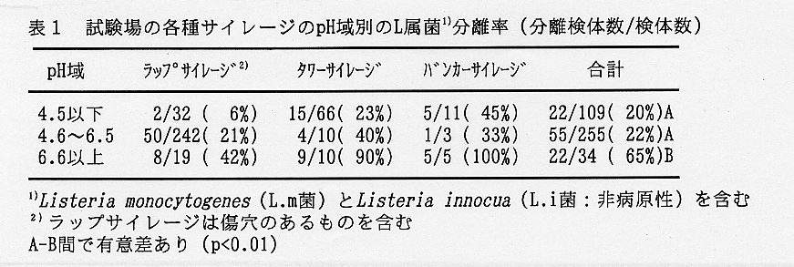 1)どのサイレージでもpHの高い部位およびカビの発育部からのL属菌の分離率は高い(表1)。