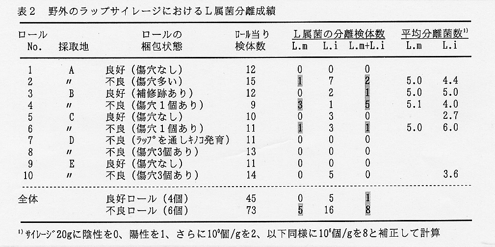 - 野外のラップサイレージにおけるリステリア菌の分布調査(表2)