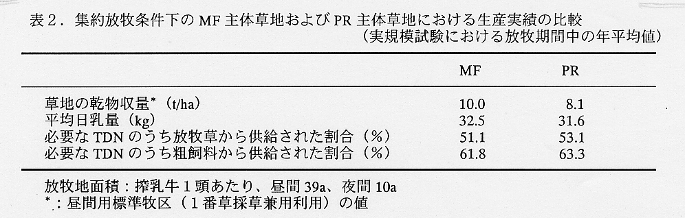 メドウフェスク主体草地の特性解明2.利用1,2年目の搾乳牛の放牧成績,日本草地