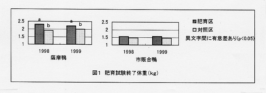 - 水田引き上げ後のアイガモに、飼料として農場副産物を給与した対照区よりもブロイラー用飼料を給与した肥育区の体重が重く、この飼料の給与は肥育に有効である(図1)。