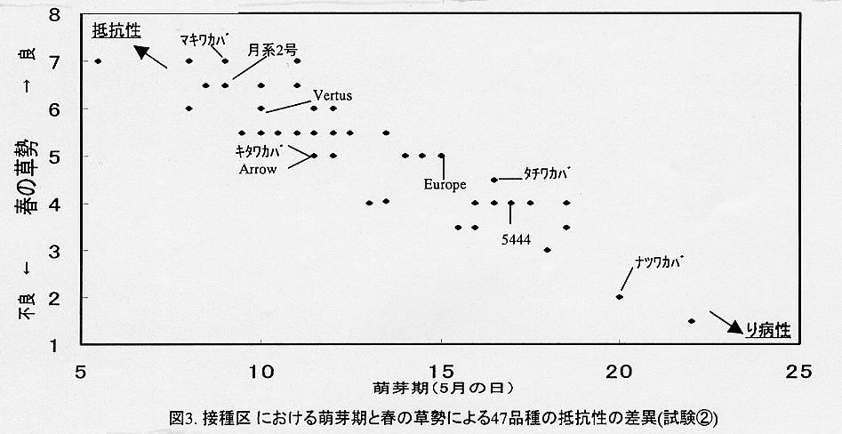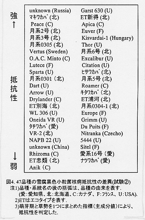 (3)Evaluation of resistance to speckled snow mold caused by Typhula ishikariensis in alfalfa inoculated in field