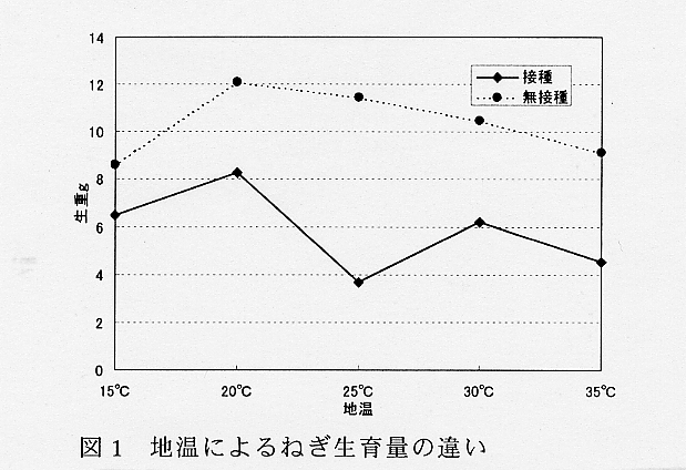 - 根腐萎凋病菌の生育適温は25℃であり、発病に適した地温も25℃である(図1)。ねぎの生育は地温が20℃を越えると低下することから、温度の高い夏に減収が甚だしい。