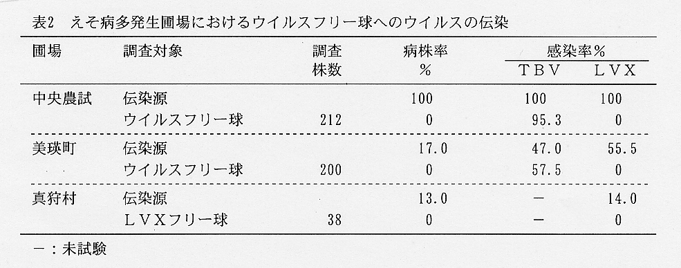 - LVXが、接触伝染した後、無被覆栽培でTBVがアブラムシによって媒介され、LVXとTBVが重複感染して、えそ病は発病する。