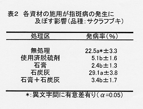 肥料の影響、日植病報65:359,1999;使用済脱硫剤およびカルシウム肥料の施用
