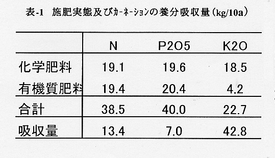 - カーネーション栽培ハウスでは土壌のNO3-Nが高く維持されており、暗渠排水中にも高い濃度のNO3-Nの流出が認められた。また、作土中のNO3-Nが高いレベルではカーネーションの生育および品質が低下した。花き栽培の生産性改善と環境負荷の軽減を図るためには、過剰な施肥と灌水方法を改めることが基本である。