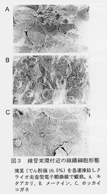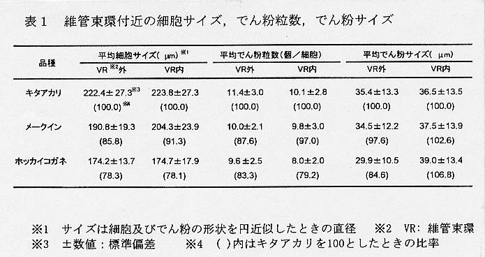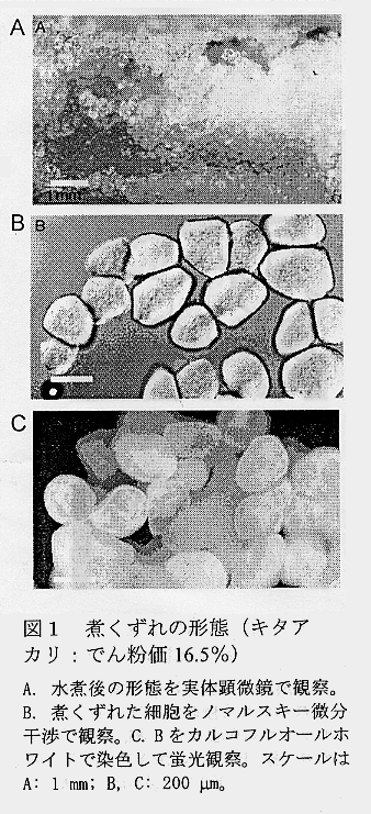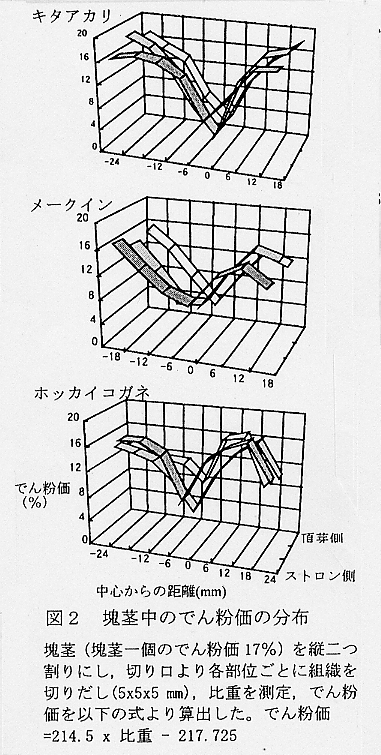 発表論文等:1.「バレイショの澱粉価と煮崩れの関係」育種・作物学会北海道談話会会報 38: p34-35,1997