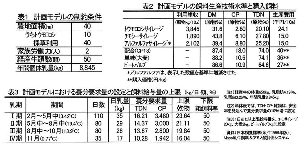 - この計画モデルの適用範囲は、耕地面積40ha・経産牛飼養頭数50頭規模の北海道十勝中央部の畑地型酪農経営を想定している。