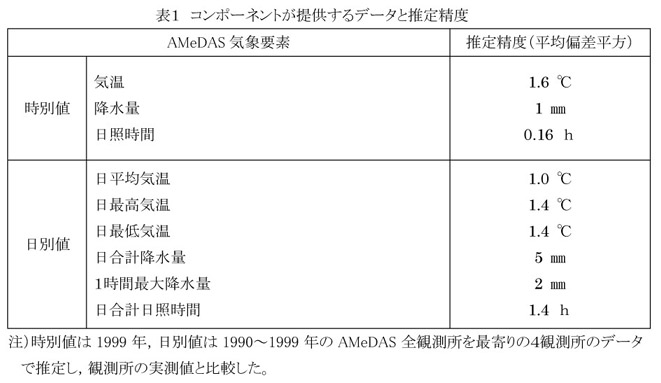 研究課題名:気象データ利用プラットフォームの構築 予算区分 :経常 研究期間 :平成12年度(平成8〜12年) 研究担当者:小田正人,喜多孝一,岩田幸良,伊藤淳士 発表論文等:気象庁AMeDASデータCD-ROM活用コンポーネント, 農業情報学,第2巻(89-96),2000