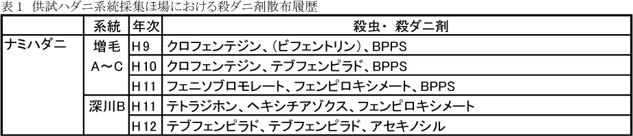 りんごに寄生するハダニ類の薬剤感受性