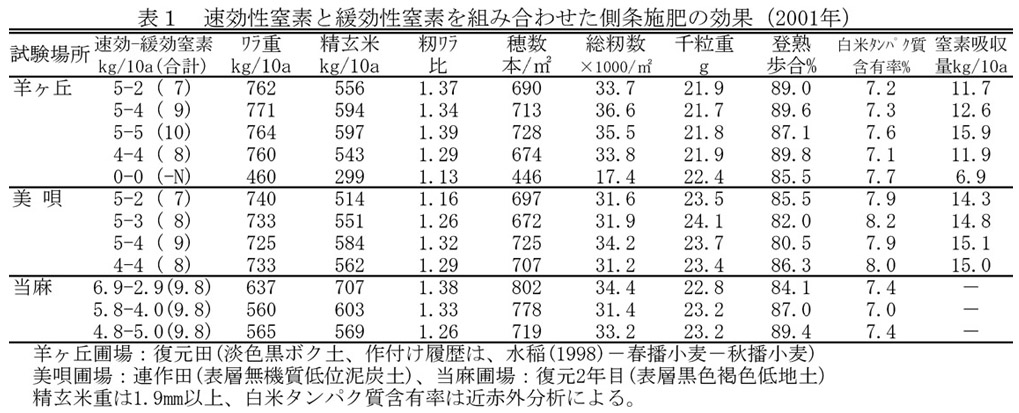 - 本成績の緩効性窒素肥料は被覆尿素(40日タイプ)である。