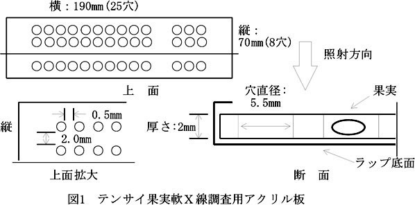 - てんさい果実用に作成したアクリル板により、透過率の向上及び果実の安定性が確保される(図1)。
