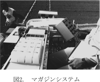 - 本機は、連続種子分配・完全自動種子交換機構を有し、ほ場試験設計に対応して精密かつ均一に播種できる(図2)。