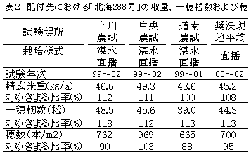 直播栽培では「ゆきまる」より一穂籾数が多く多収である。(表1、表2) |