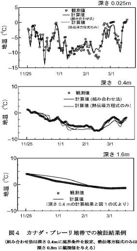 | 与えられた気象条件(気温、日射、風速等)から、地温を推定する場合は、地表面の条件(裸地、植生地、積雪、土壌凍結等)に応じた地表面の熱収支式と組み合わせて解く。 | |||||||||||||||