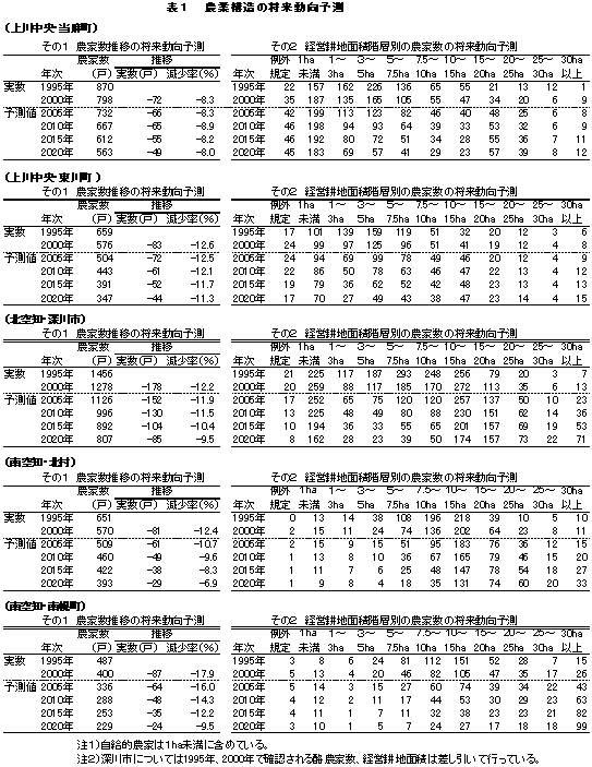 農家戸数の将来動向予測を行ったところ、上川中央・当麻町、東川町及び北空知・深川市では、ほぼ一定の減少率で推移していくのに対して、南空知・北村、南幌町では減少率が低下していくことが予測された。 |