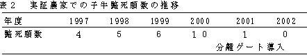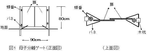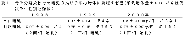 | 母牛だけが通過し子牛が通過しようとしない母子分離ゲートを用いて、子牛の高増体と疾病の早期発見ができる。また、母牛の過肥防止にはリードカナリーグラス(RCG)草地の利用が有効である。 | |