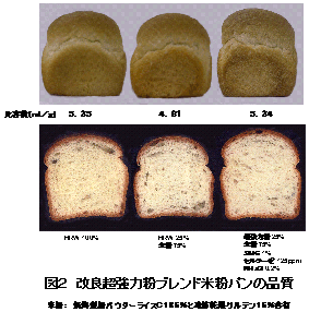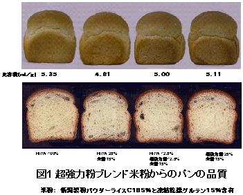 を添加することによって、米粉ブレンド粉の製パン性がかなり向上する(図1)。 |