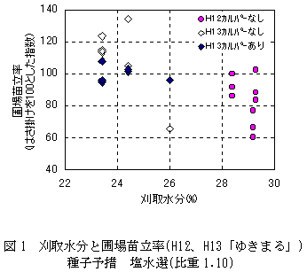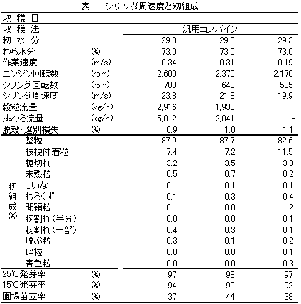 | 汎用コンバインを用いて「ゆきまる」を直播用種子として収穫する際の参考とする。 | |||||||