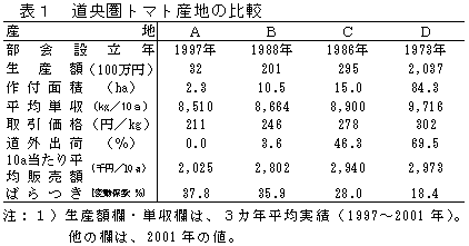 道央圏におけるトマト産地について比較したところ、面積当たりの販売額は、他産地と新興のA産地との間に差が生じていた(表1)。また、早期から産地化に取り組んだ産地ほど、生産者間のばらつきが小さかった。 |