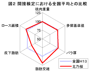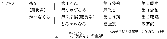| 「北乃桜号」は藤良系の「糸光」を父に、藤良系の「第7糸桜」を母方祖父とする哺育能力の高い血統で、脂肪交雑が特に優れ、繁殖雌牛の改良に適した種雄牛である。 | |