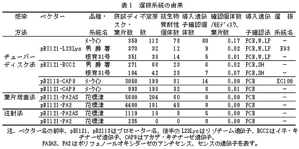 | [担当]中央農試・農産工学部・細胞育種科、遺伝子工学科 | |
