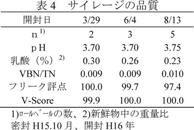 - 圃場内走行作業により調製したベールの5、8、10ヶ月後の開封時の品質はフリーク評点、V-Scoreとも良好で(表4)、供試した細断型ロールベーラは圃場内走行および定置作業により良質なコーンサイレージの調製が可能である。