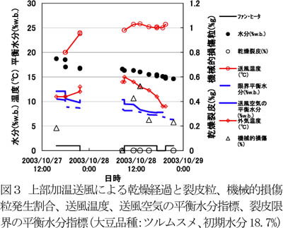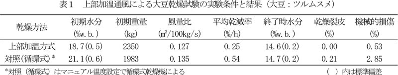 循環式乾燥機を利用した上部加温通風による大豆の低損傷高品質乾燥調製法