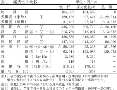 - これにより、労働費の削減と粗収益の向上がもたらされ、12万円以上(10a当たり)の所得の増加が期待できる(表1)。
